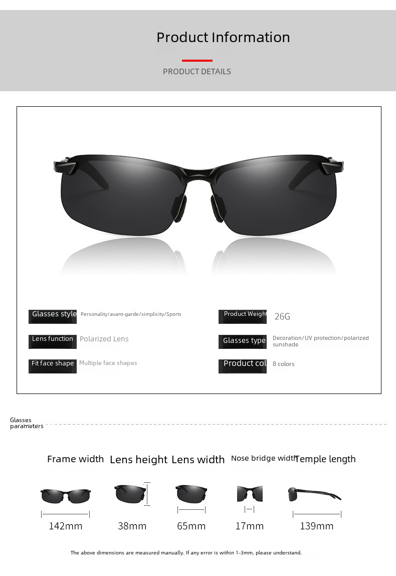 Polarized Lens:Experience the world in a whole new light with these polarized sunglasses. The lenses are designed to reduce glare and eye strain, making them perfect for driving or outdoor activities.